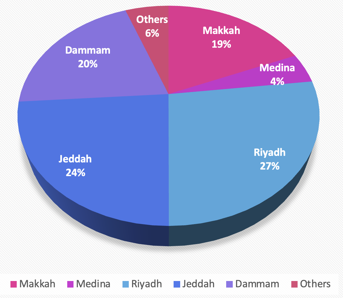 Geographic distribution of the study participants. Bar chart illustrating the frequency of participants from the primary urban centers included in the cross-sectional survey (n=946). The Eastern province contributed the largest number of respondents.